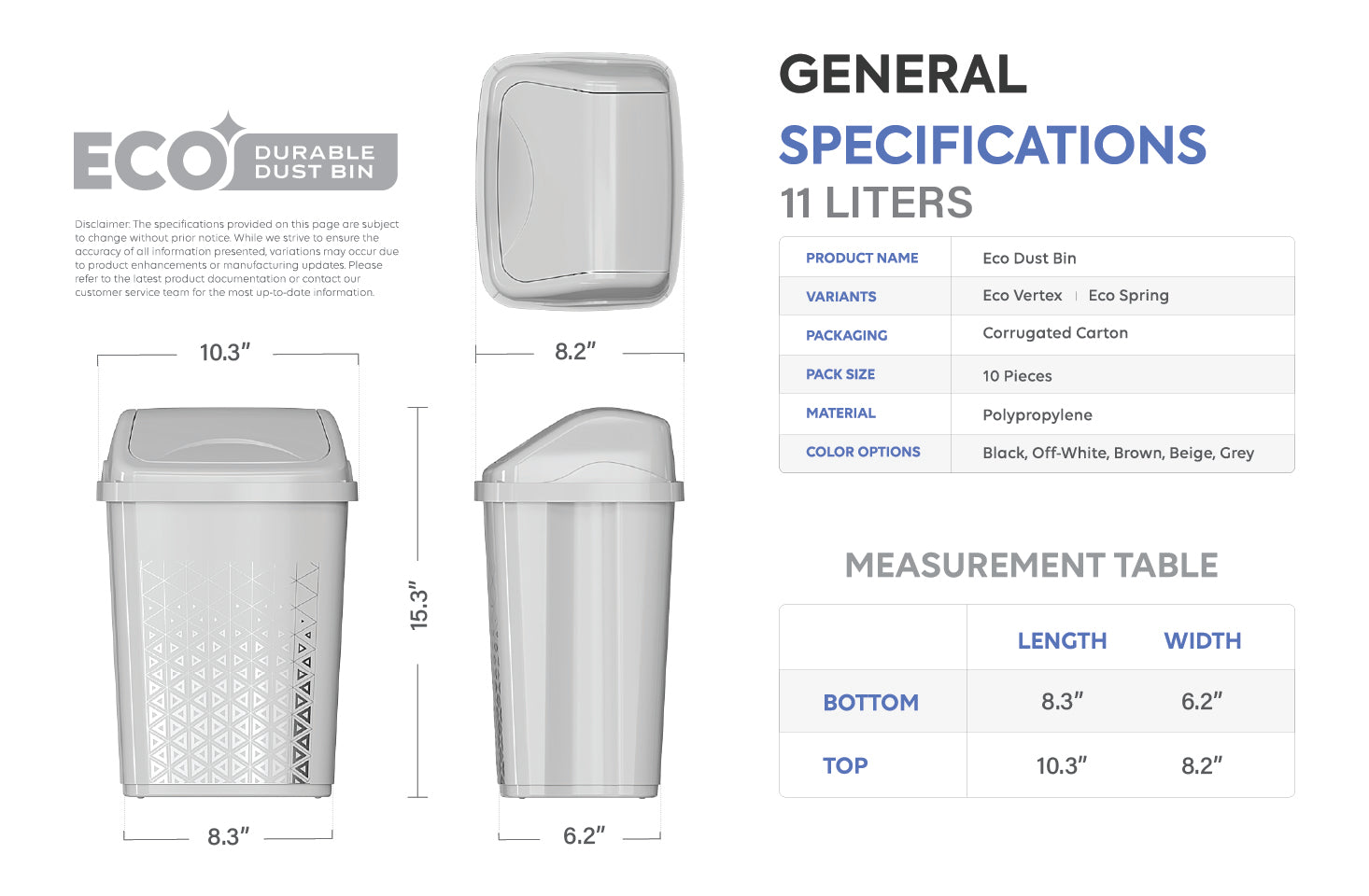 Eco Vertex DustbinOur Eco Vertex dustbin offers a sleek, sturdy, and stylish solution for any space. Featuring odor-lock technology and a unique dustbin design, it’s perfect for modern homes. This kitchen dustbin combines practicality with a geometric pattern, adding a sophisticated touch to your space, and comes with a lid minimizing the cluttered appearance. Whether you need a compact or big dustbin, it's the ultimate blend of form and function for efficient waste management.