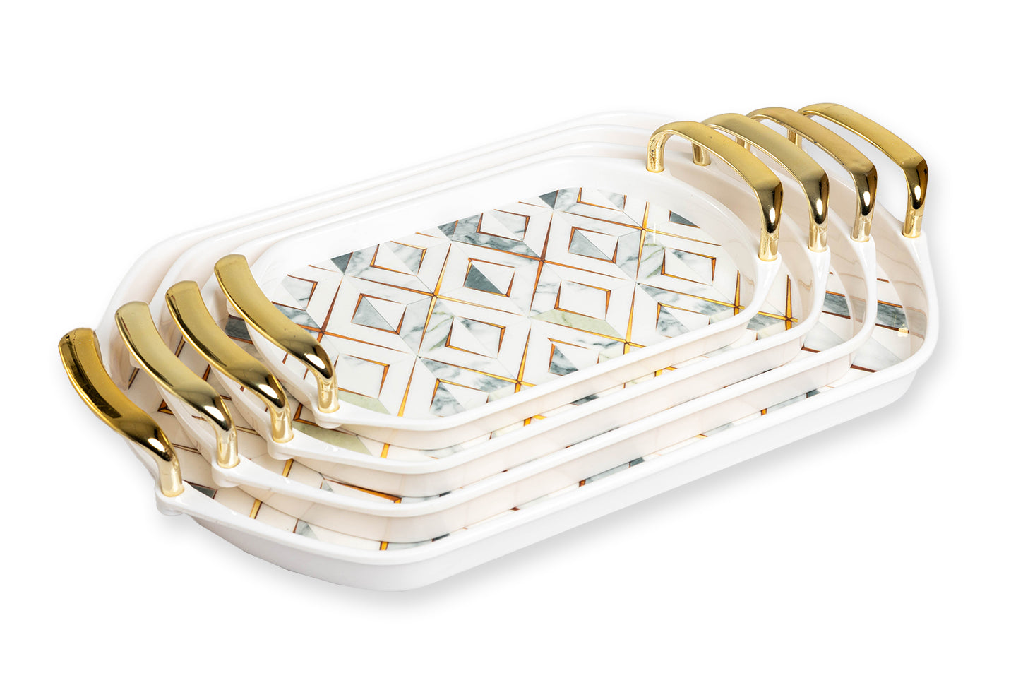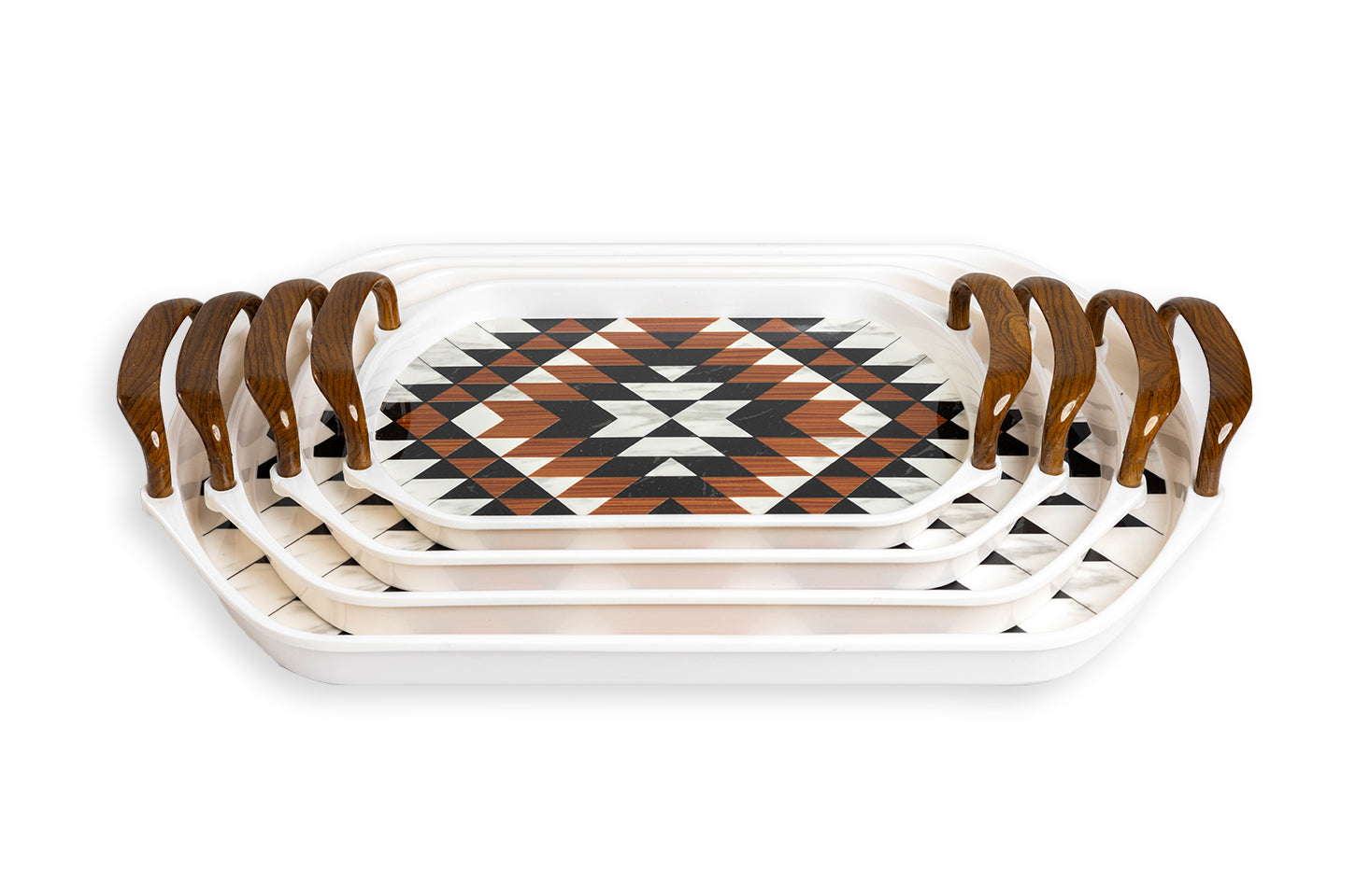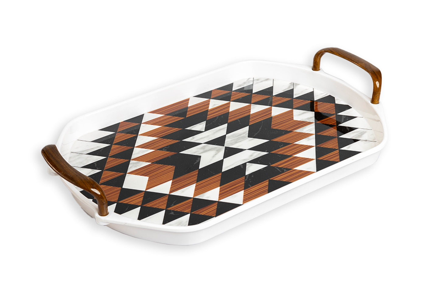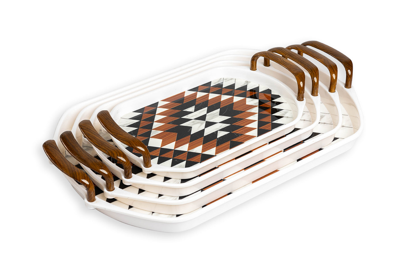 Explore a wide variety of melamine crockery in Pakistan with the APEX Tray Collection. From the elegance of floral prints to the boldness of geometric patterns and the sophistication of marble textures, each tray is a masterpiece. These designs seamlessly blend aesthetics and functionality, perfect for elevating any dining occasion.