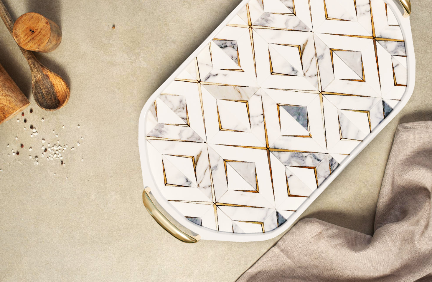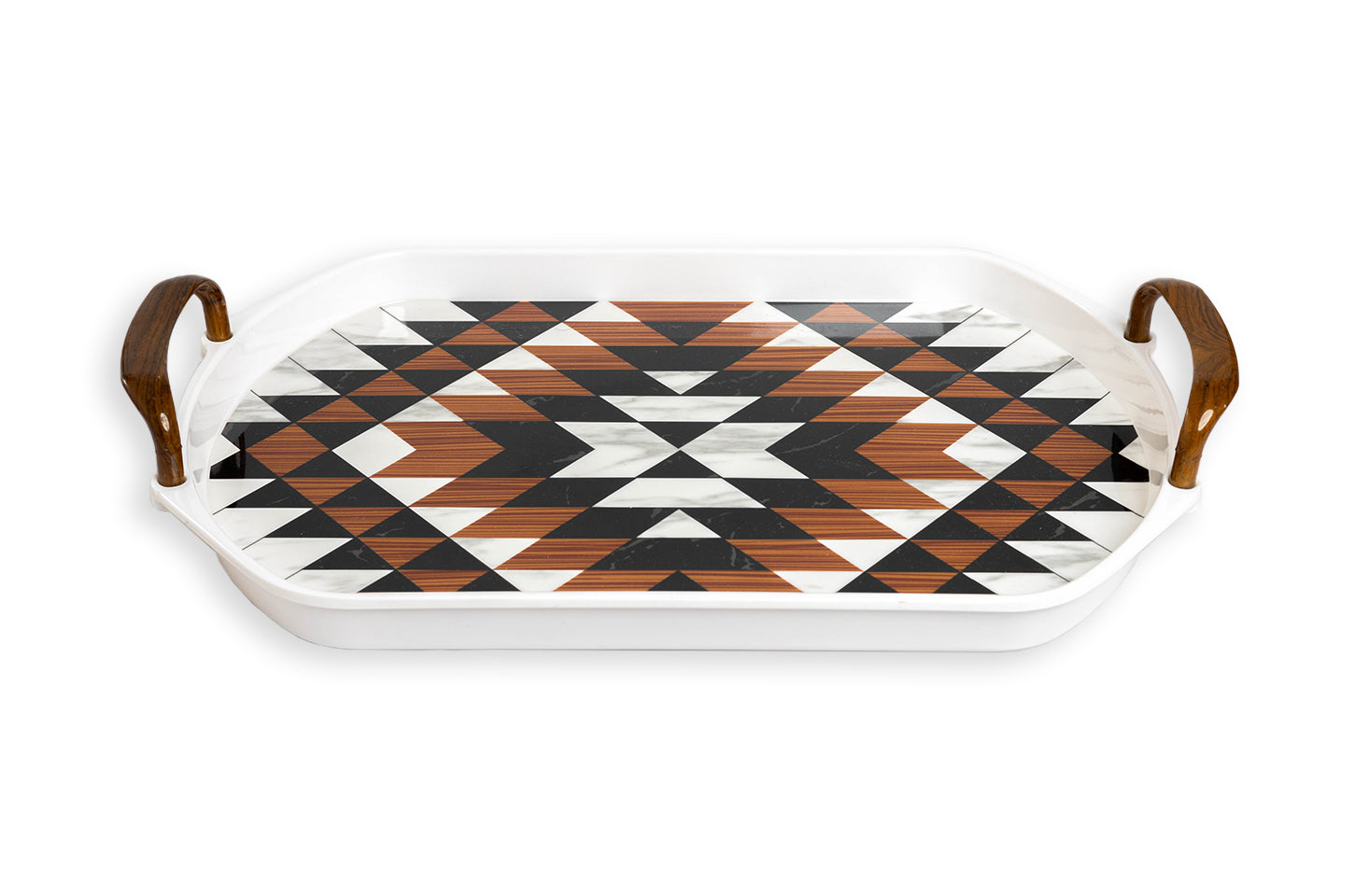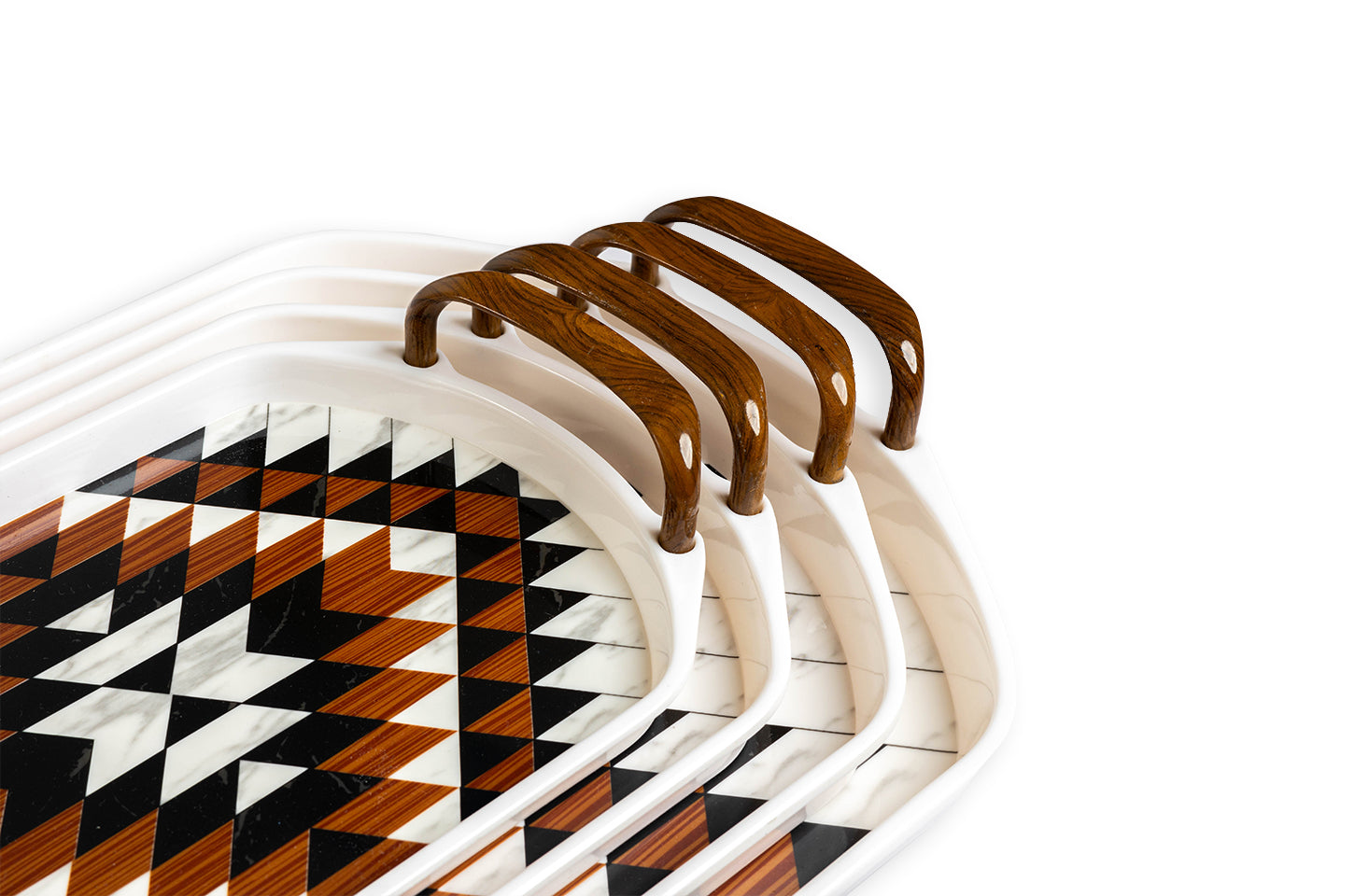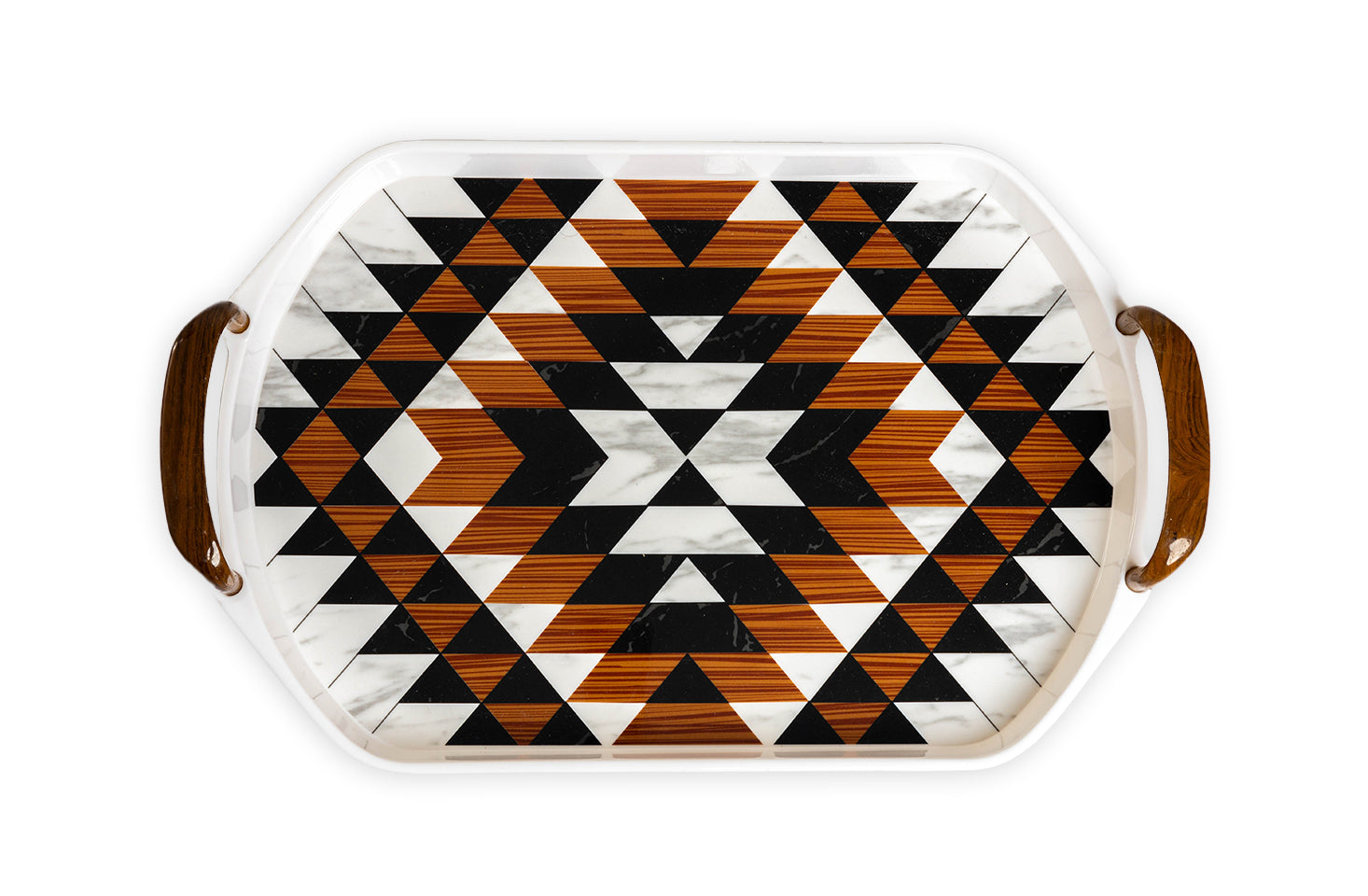 Explore a wide variety of melamine crockery in Pakistan with the APEX Tray Collection. From the elegance of floral prints to the boldness of geometric patterns and the sophistication of marble textures, each tray is a masterpiece. These designs seamlessly blend aesthetics and functionality, perfect for elevating any dining occasion.