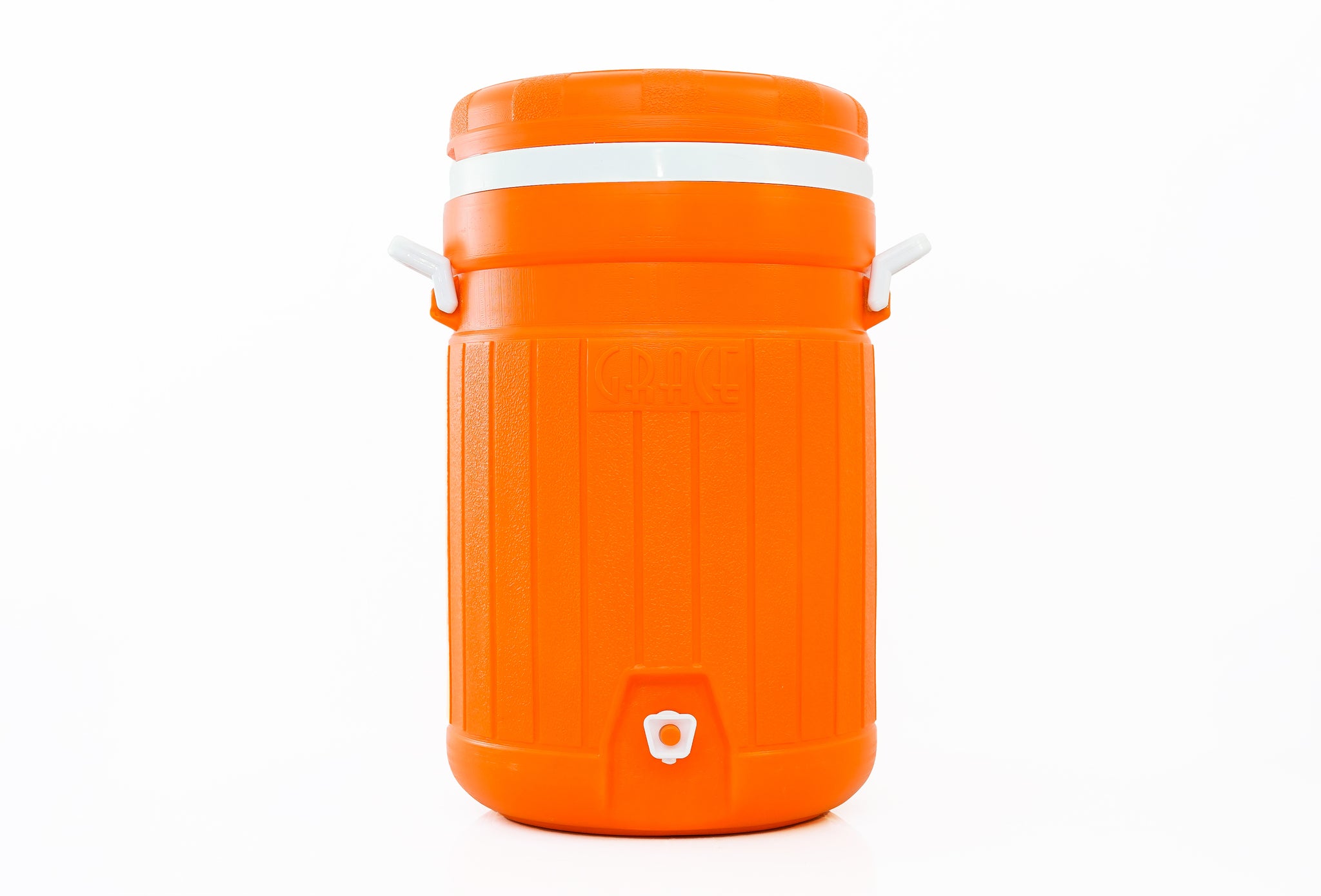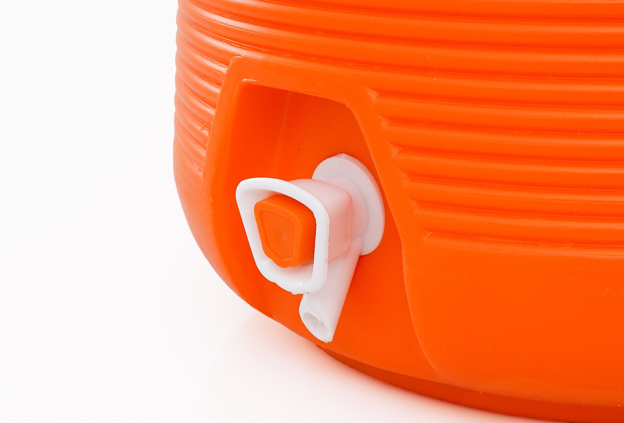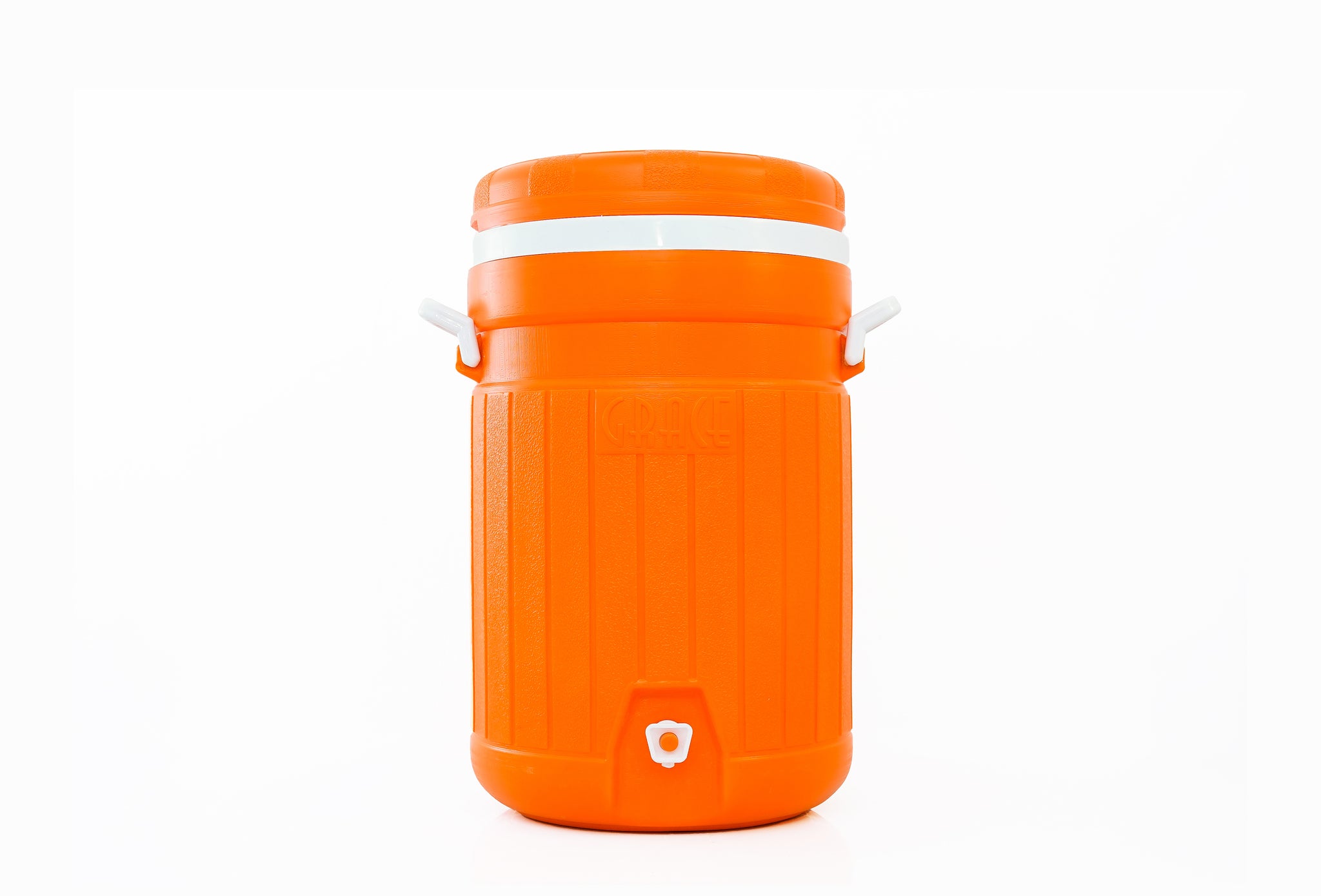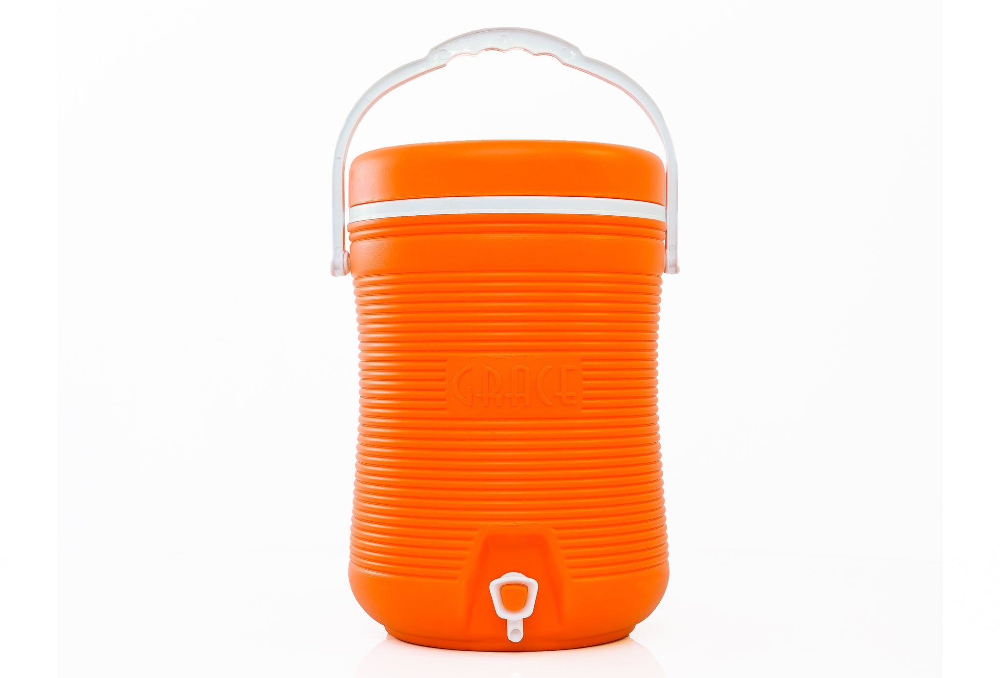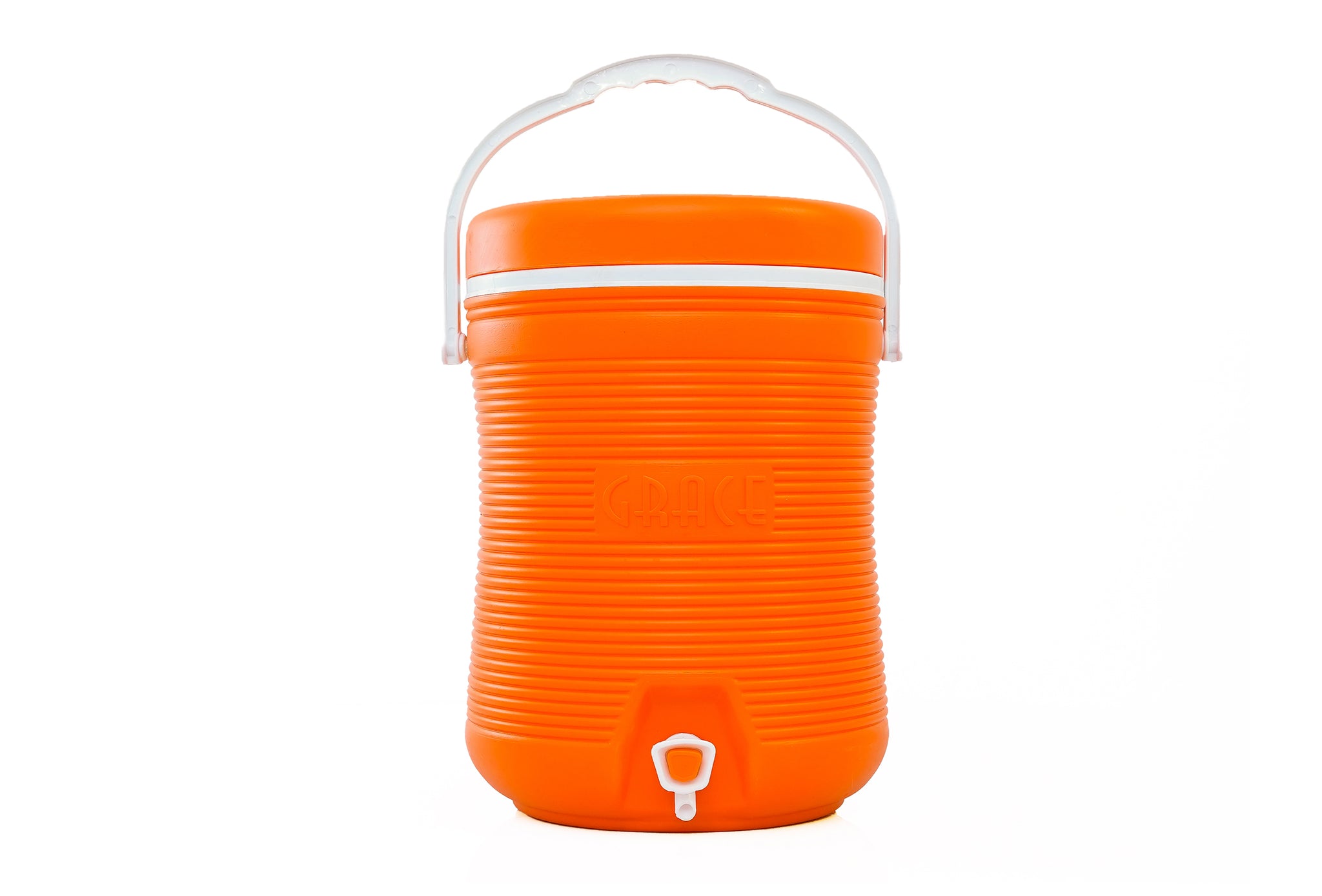 Great orange cooler. I was thirsty couldn't find water but could spot the cooler from very far. Great cooler!