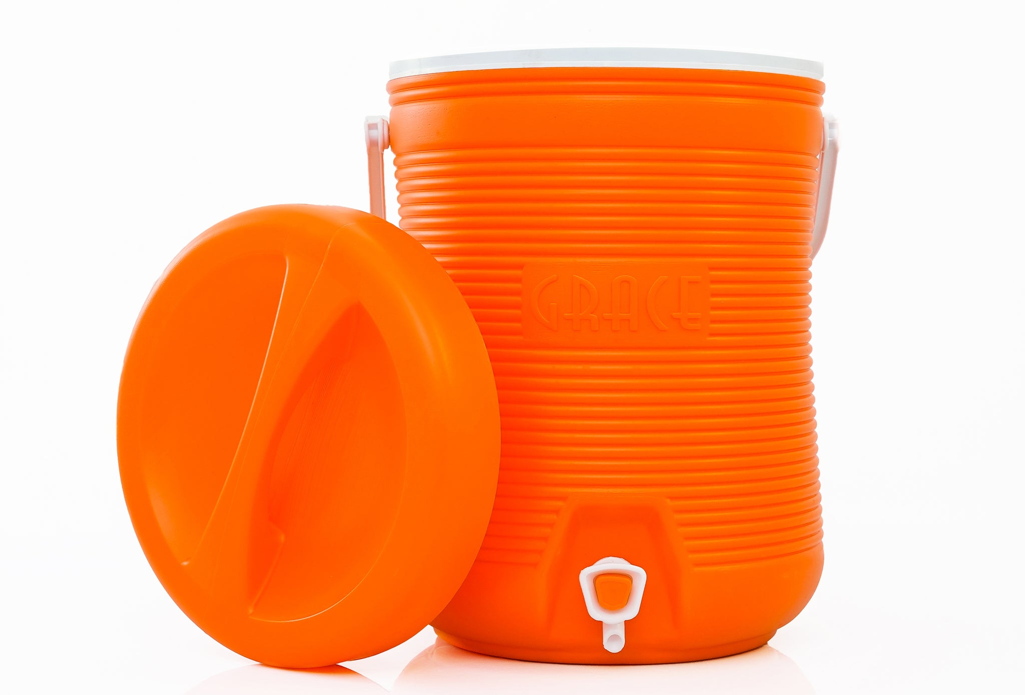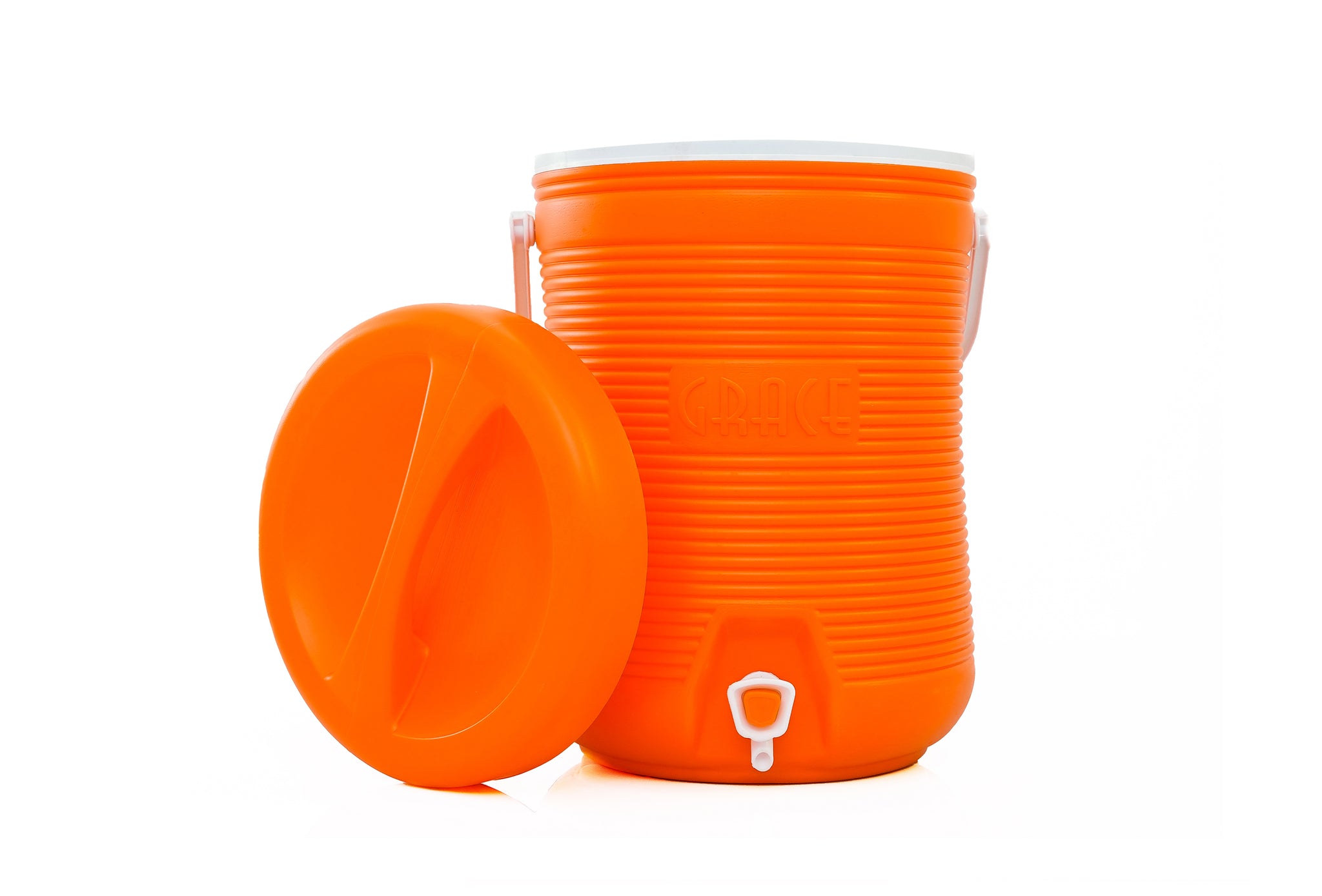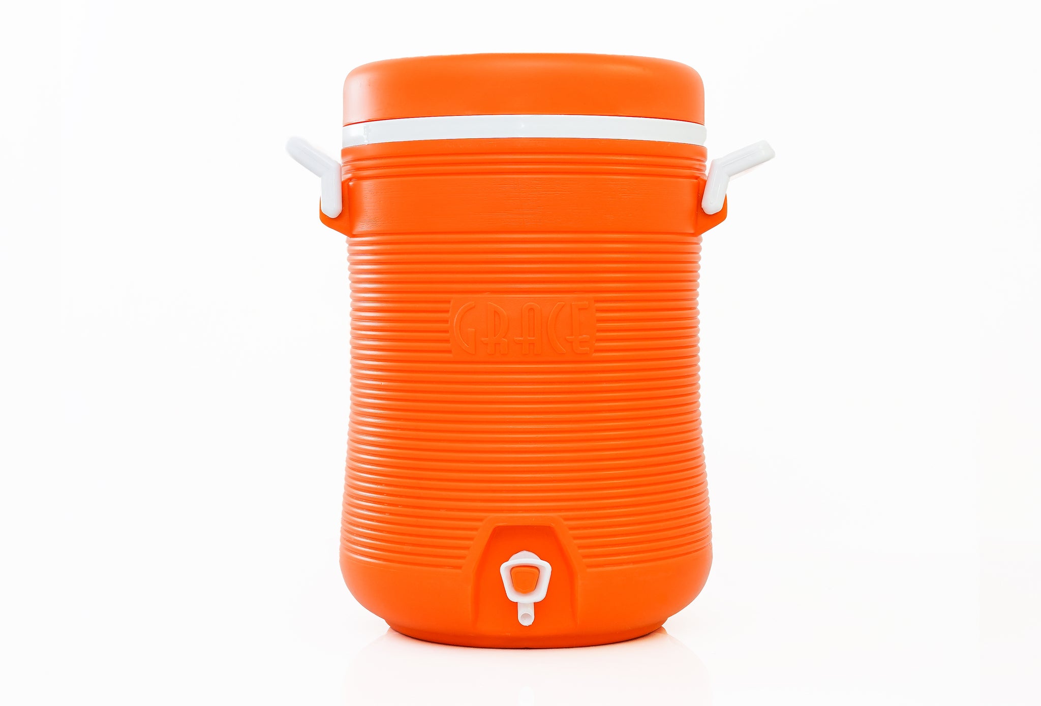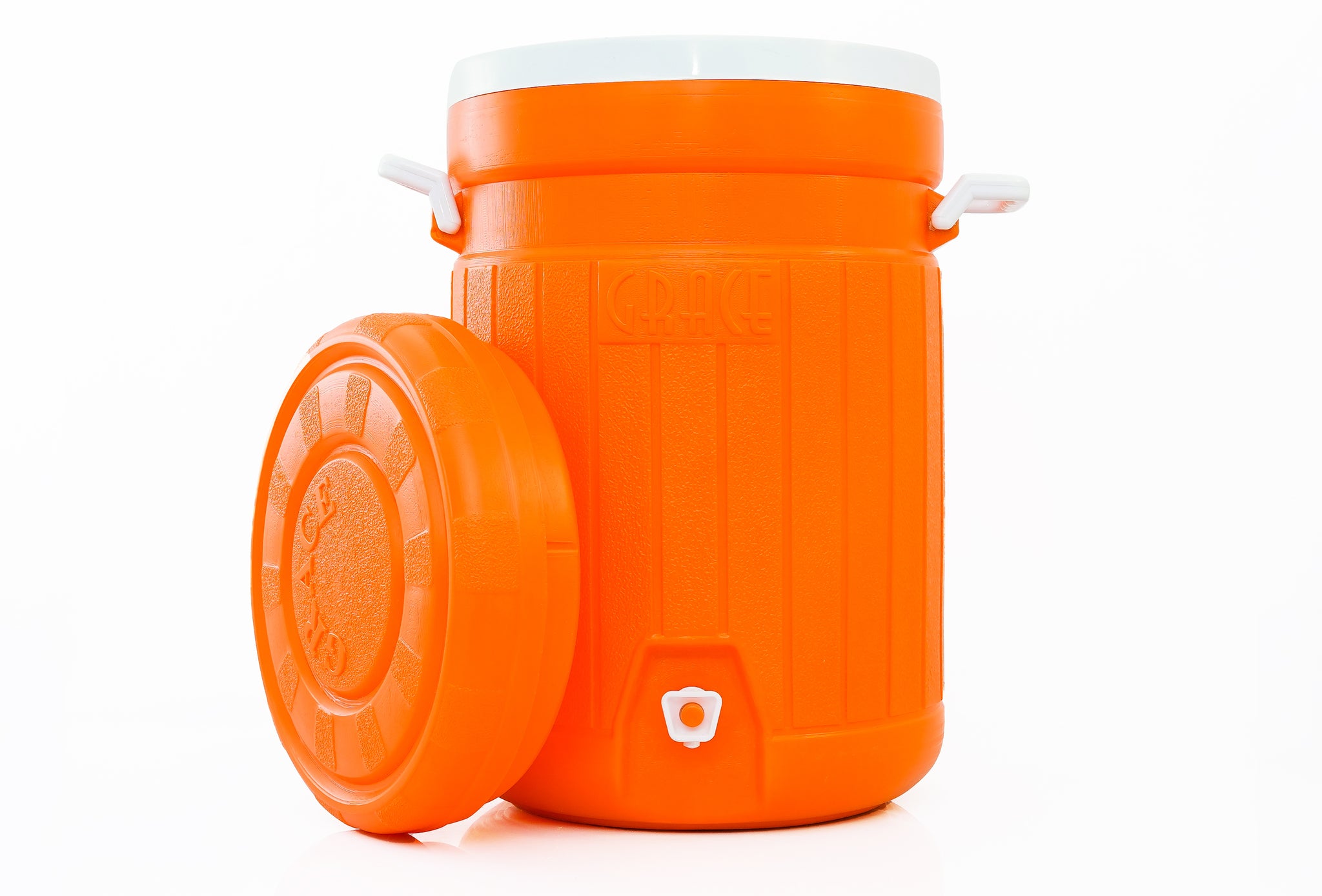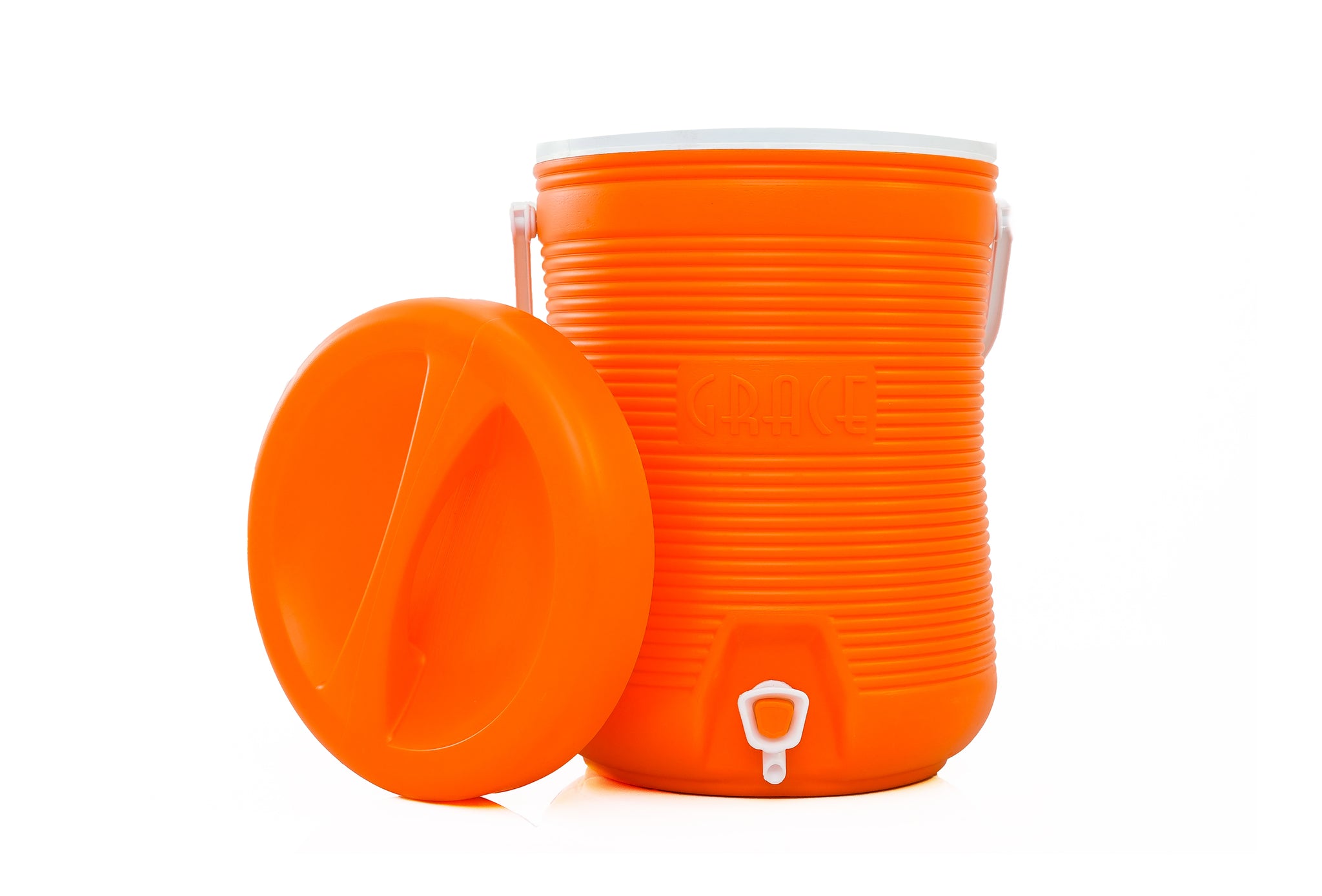 Great orange cooler. I was thirsty couldn't find water but could spot the cooler from very far. Great cooler!