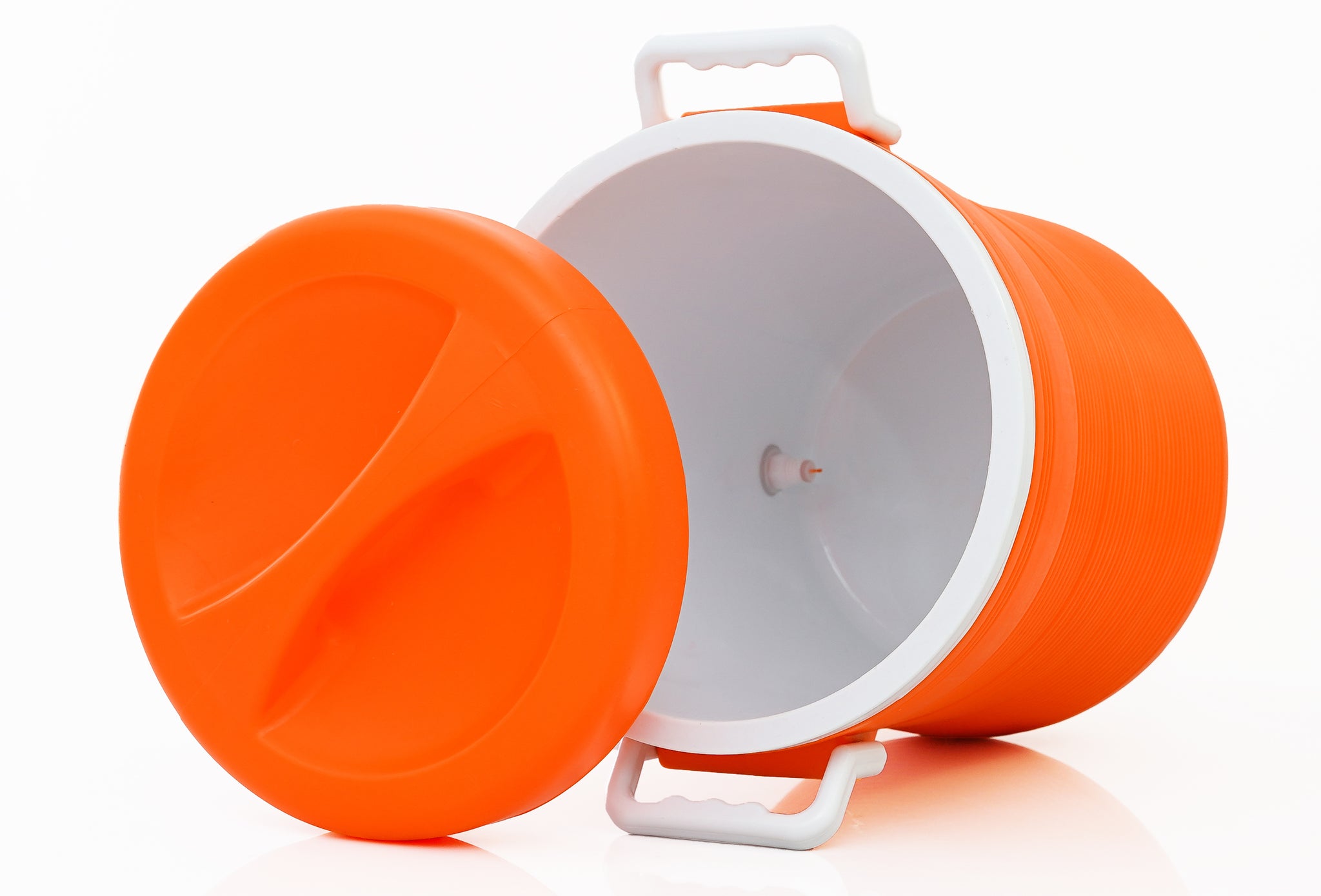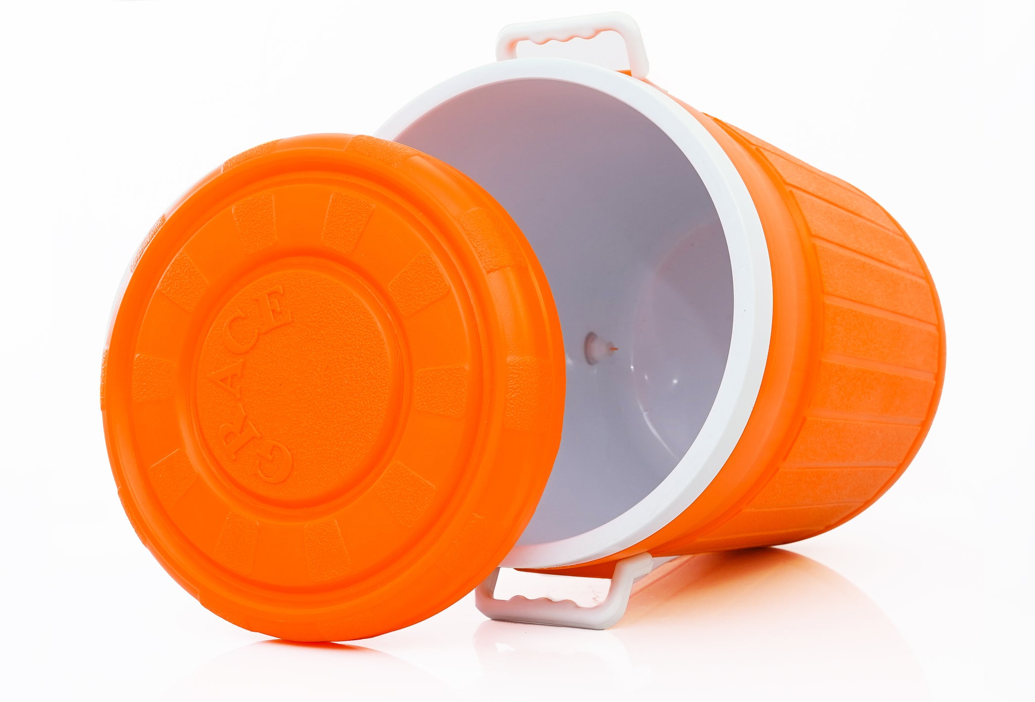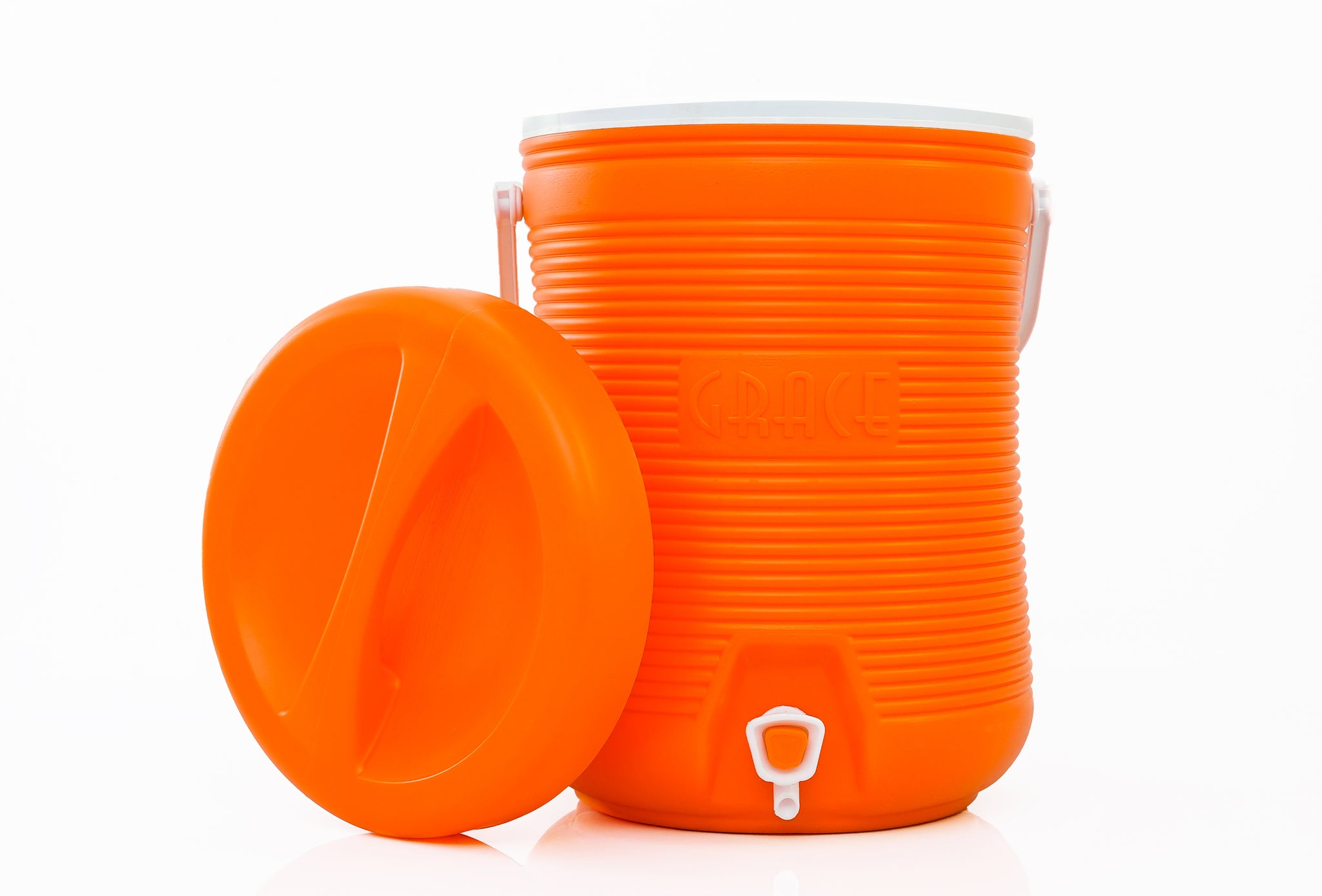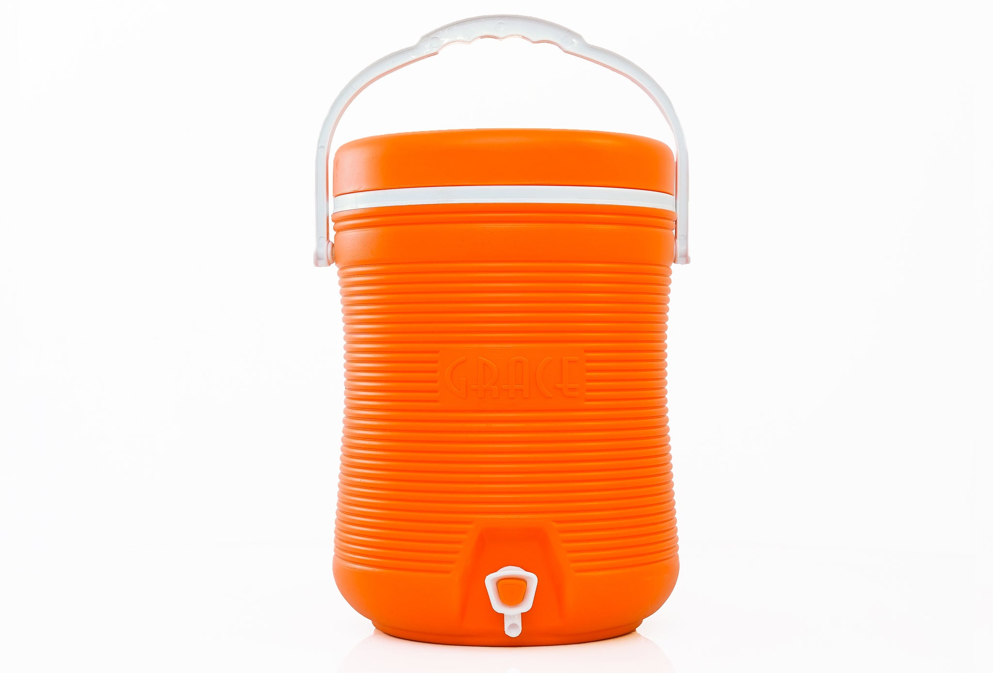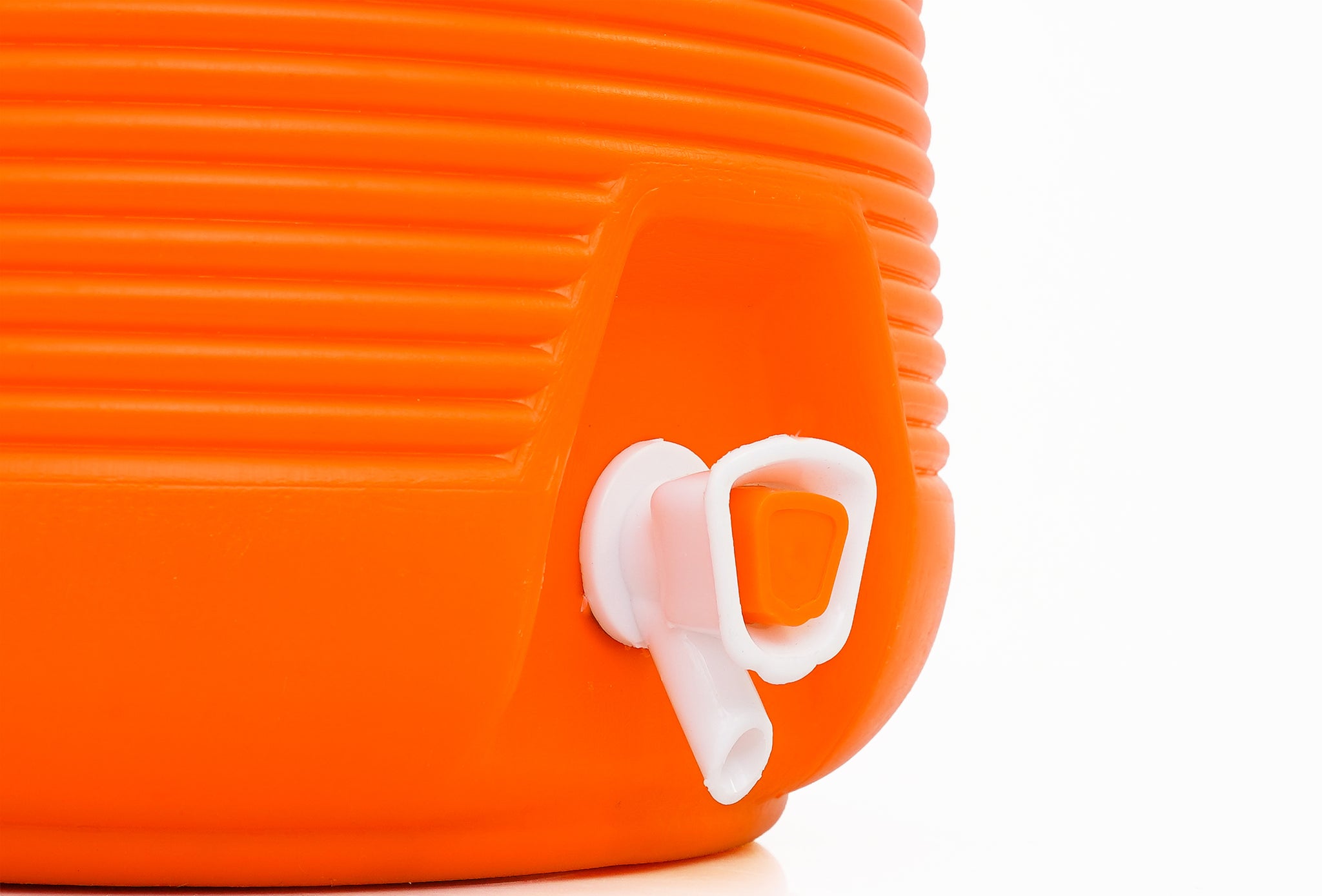 Great orange cooler. I was thirsty couldn't find water but could spot the cooler from very far. Great cooler!