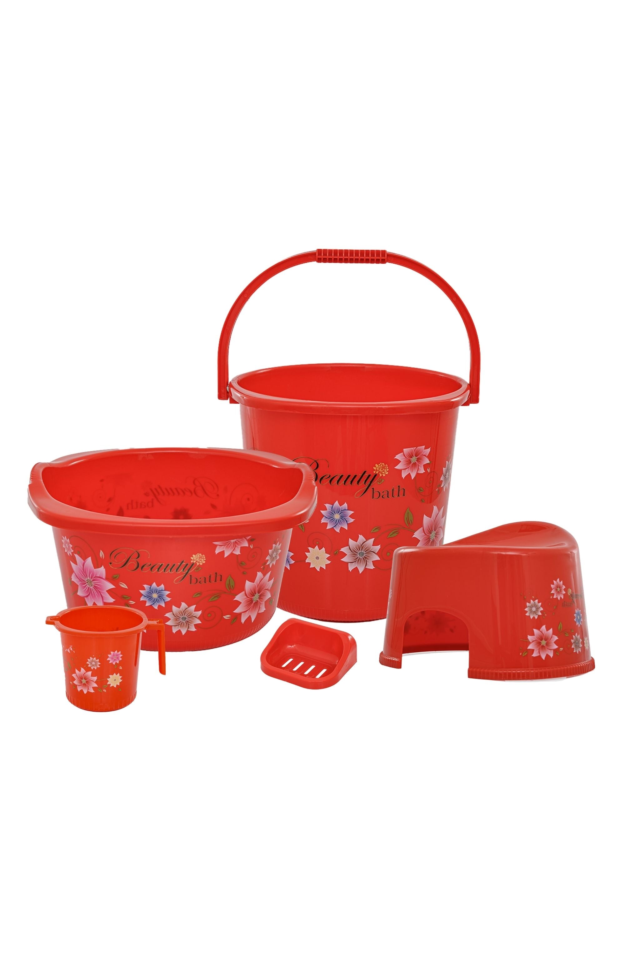 1x Bucket 1x Mug 1x Soap holder 1x Stool 1x basin tub